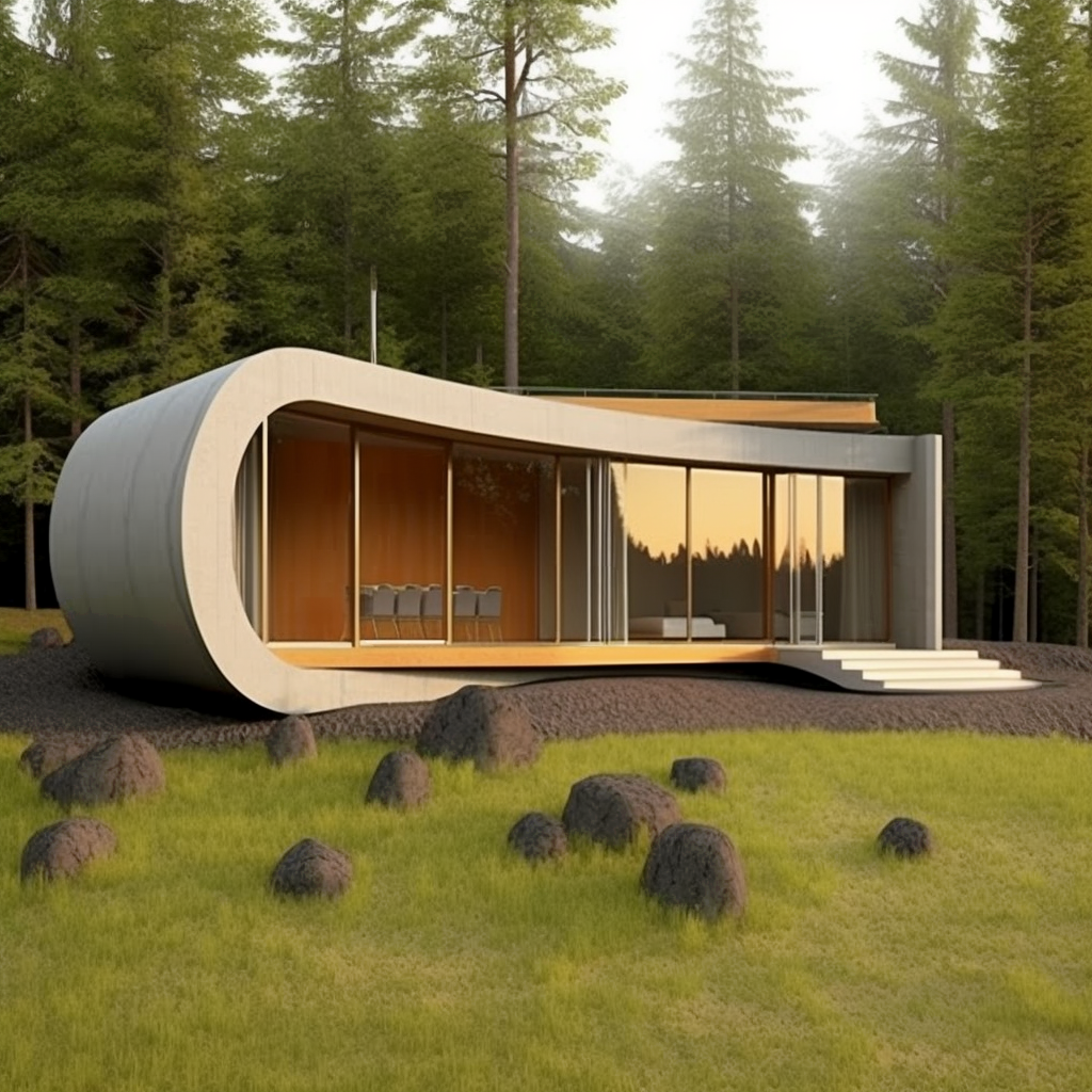 традиционного строительства. Плавные линии, цельный объём, минимальное количество