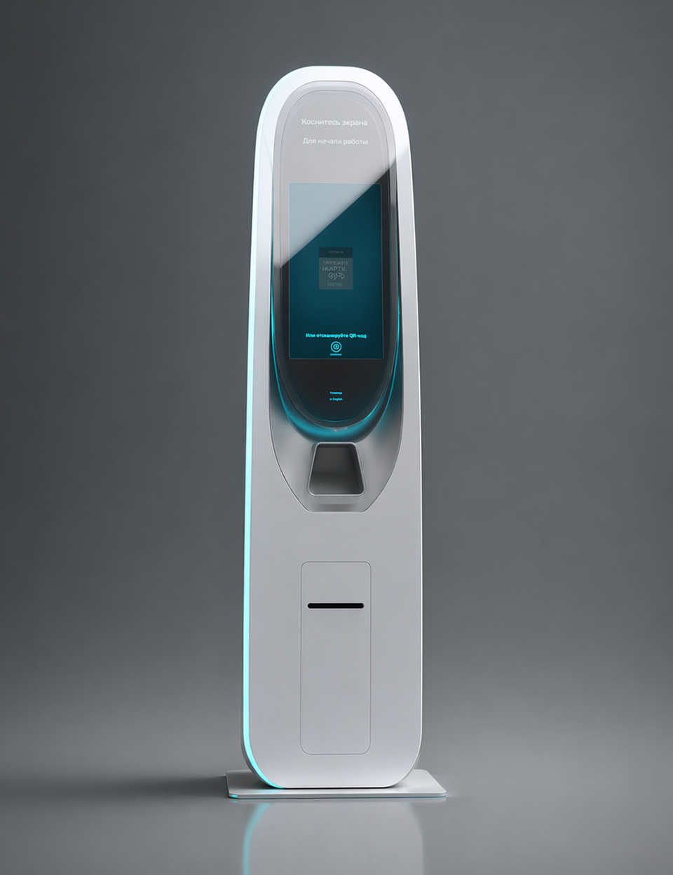 Современный платёжный терминал, в котором дизайн работает не на эффект, а на удобство: понятный интерфейс, тактильная логика и спокойная эстетика технологичного объекта.
